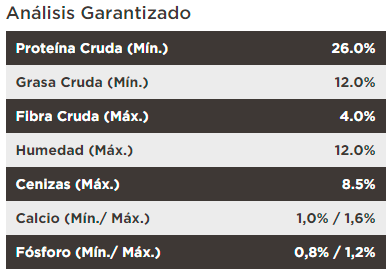 Utilizando como ingrediente principal carne fresca de pollo, esta fórmula ofrece, a través de croquetas más grandes, una nutrición con alto contenido de proteínas (26%) de calidad y menos calorías provenientes de la grasa (12%).