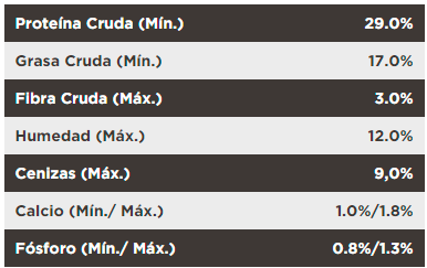 - Con carne fresca de pollo, fuente de proteínas de calidad, que son altamente digestible y presentan alto valor biológico, reduciendo la generación de residuos proteicos. Altamente palatable.
